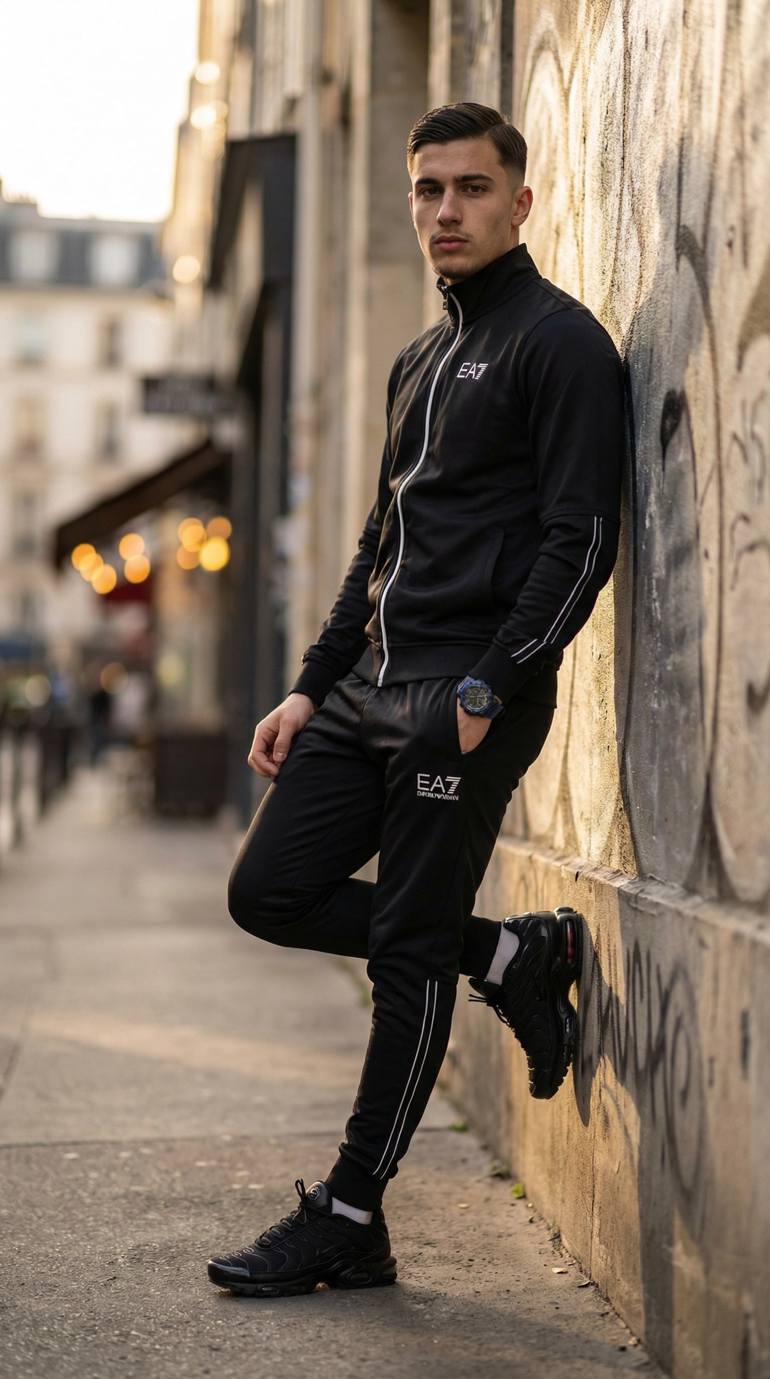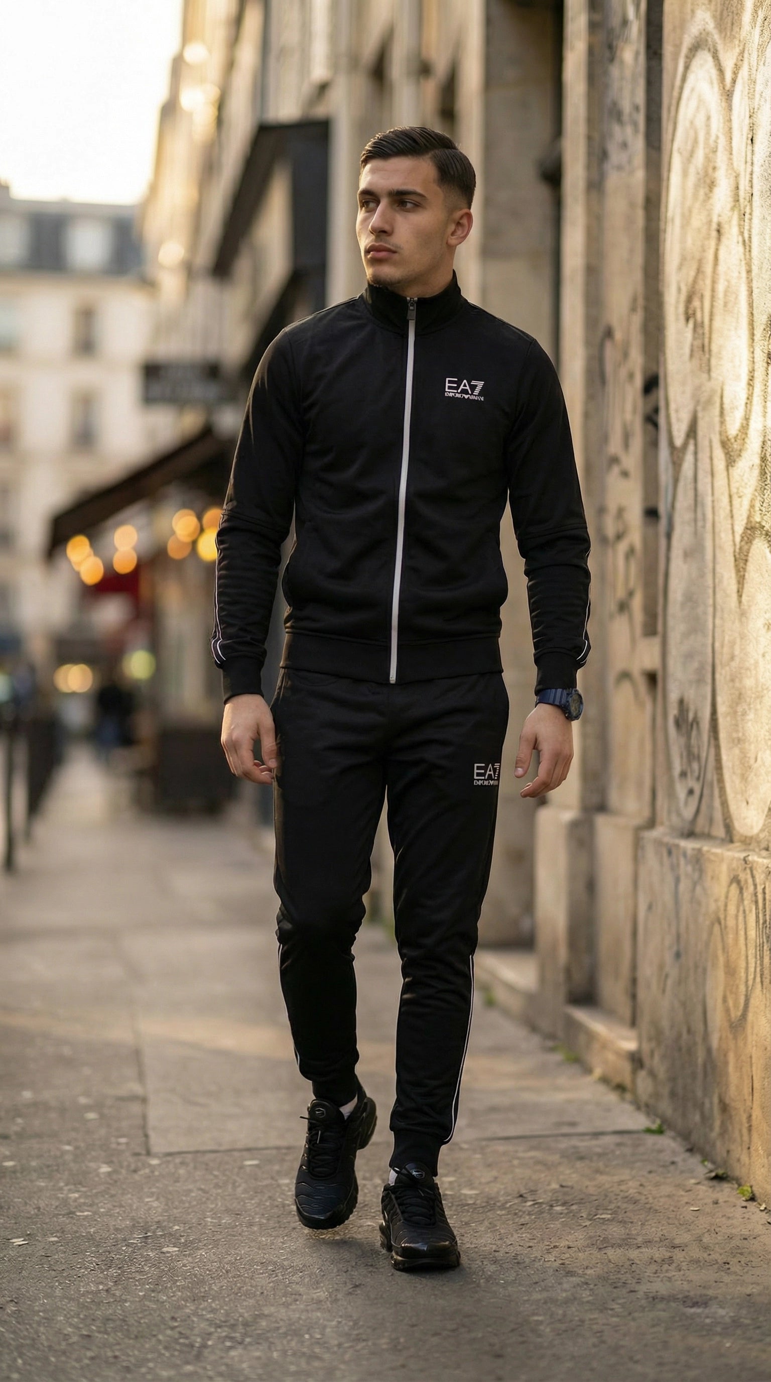 أضف لمسة من الأناقة والرفاهية إلى خزانة ملابسك مع طقم E7A الأيقوني. تصميم يجمع بين المظهر الرياضي العصري والكلاسيكية الإيطالية، مثالي لخروجاتكم اليومية بستايل متميز.